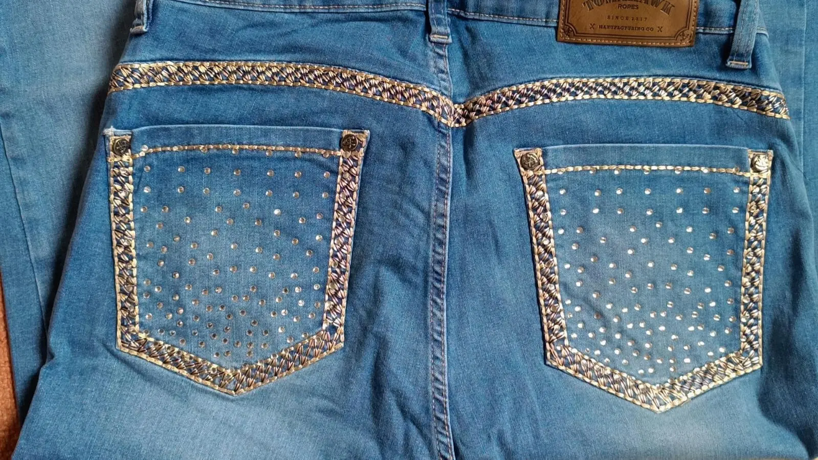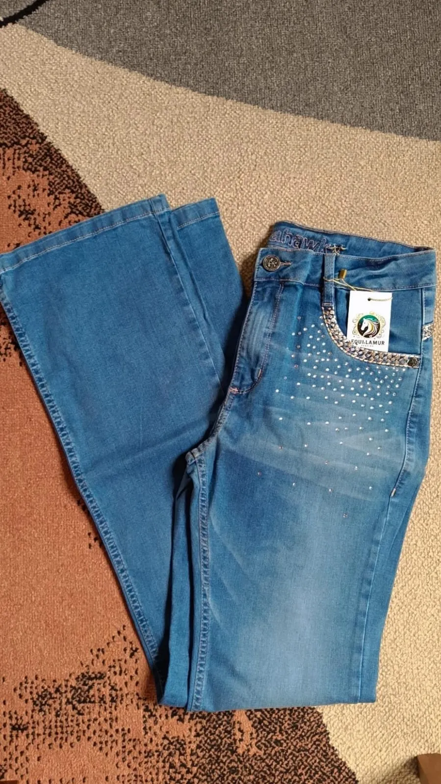 A Calça Jeans Claro com Strass & Bordado Prateado da Tomahawk Collection combina estilo country moderno e sofisticação. Com sua lavagem clara e detalhes em strass, ela valoriza o corpo e adiciona um toque de brilho a qualquer look. Ideal para eventos country, cavalgadas ou até mesmo para um dia casual, essa peça é a escolha perfeita para quem busca conforto e elegância.