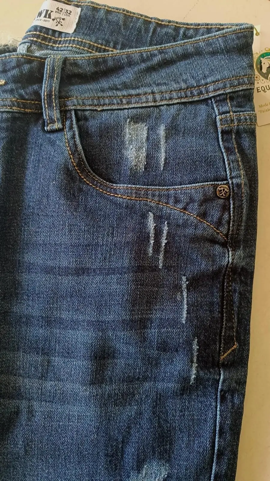 Com modelagem reta e lavagem azul média, essa calça une durabilidade e atitude com detalhes destroyed discretos. Perfeita para o campo ou para a cidade, combina com camisetas, cintos western e camisas xadrez, oferecendo versatilidade no seu visual.