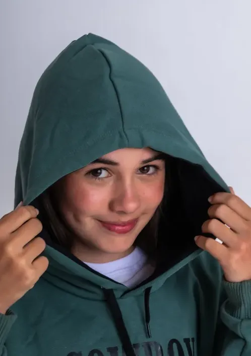 O moletom infantil com capuz traz o charme do universo country em um design moderno e superconfortável. Com estampa "COWBOY" em destaque e detalhes em rosa, ele é perfeito para os pequenos que amam o estilo western com personalidade. Possui bolso canguru, capuz ajustável com cordão e punhos canelados, garantindo aquecimento e liberdade nos movimentos.